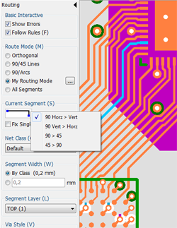 Manual routing features have been expanded to include: Follow Design Rules option, orthogonal segments, fix single segment option, trace via preview; we have also redesigned routing modes.